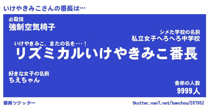 | 肩書あだ名 | 『いけやきみこ御曹司』 |