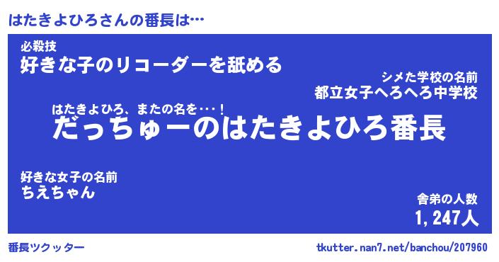 | ポケモン風あだ名 | 『ハタチュウ』『ハタキダネ』 |