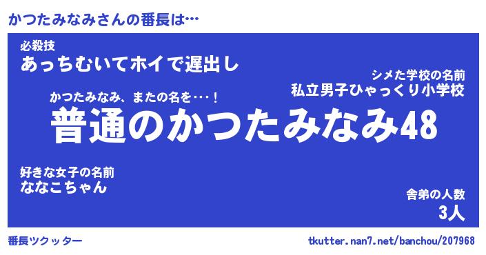 | 胡散臭い通販商品みたいなあだ名 | 『モテモテ間違いなし水晶球…その名も「かつたみなみ」』 |