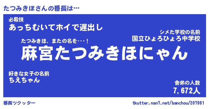 | ファンタジー風あだ名 | 『タツフェル』『エターナルタツミキホー』 |