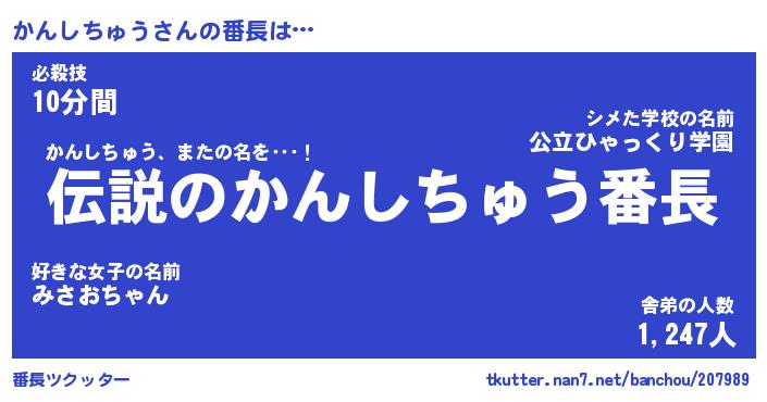 | 伝説のあだ名 | 『伝説のスナイパーかんしちゅう』 |