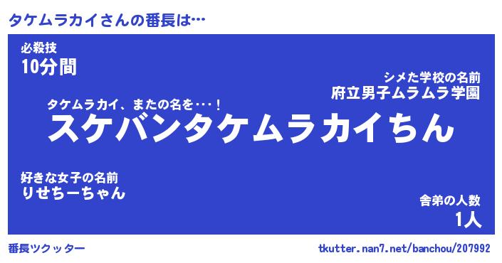 | 2回繰り返すあだ名 | 『タケタケ』『タタケケ』 |