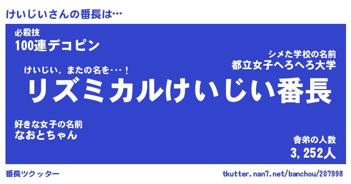 | ヘコむあだ名 | 『けいにゅー』『つくし』 |