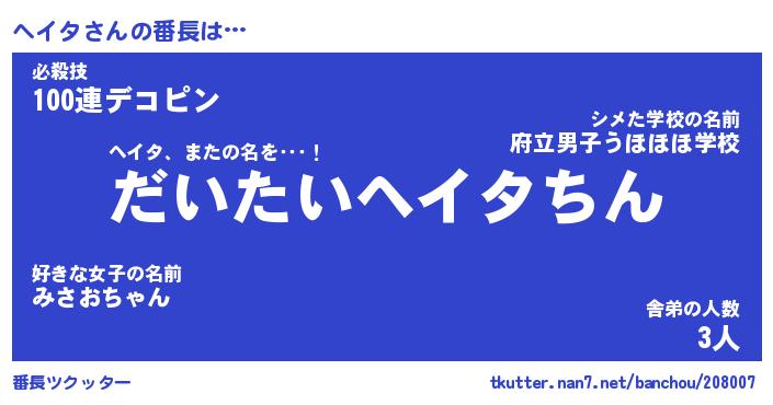 | ポケモン風あだ名 | 『ヘイチュウ』『ヘイタダネ』 |