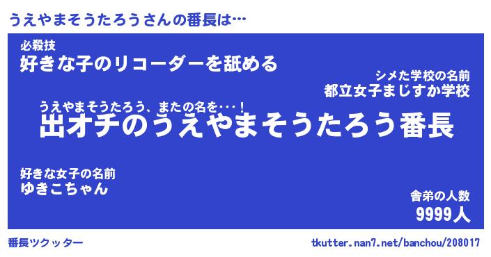 | 伝説のあだ名 | 『伝説のスナイパーうえやまそうたろう』 |