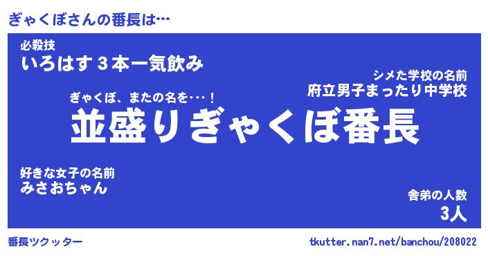 | ピコ太郎風あだ名 | 『ギコ一郎』『ピギ八郎』『ギャ四郎』 |