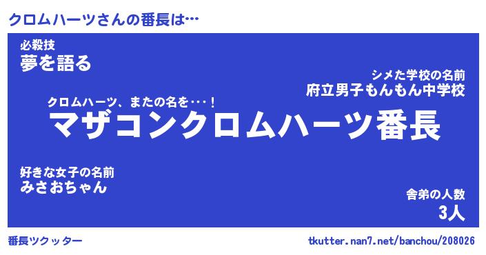 | ヒーロー風カッコイイあだ名 | 『スーパークロムハーツ』『銀牙騎士クロ』 |