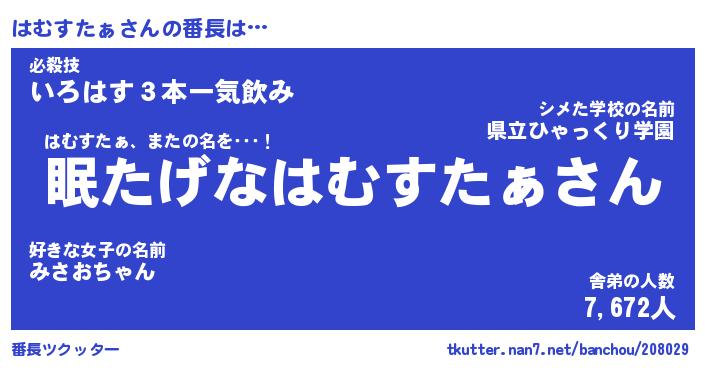 | 伝説のあだ名 | 『封印されしスナイパーはむすたぁ』 |