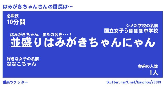 | ヘコむあだ名 | 『はみにー』『牛乳』『はみっぺ』 |