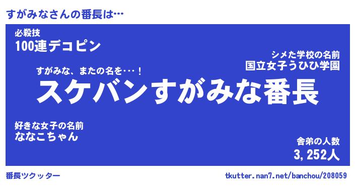 | 意味不明あだ名 | 『ペロリンすがみな』『永久保存すがみな』 |