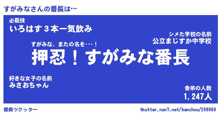 | ピコ太郎風あだ名 | 『スコ太郎』『ピス八郎』『スガ次郎』 |