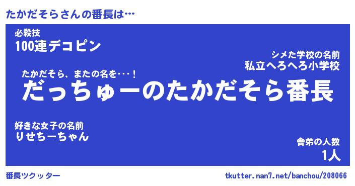 | ヒーロー風カッコイイあだ名 | 『スーパータカダソラ』『黄金騎士タカ』 |