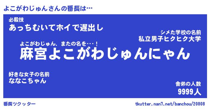 | 恥ずかしいあだ名 | 『プリティーよこがわじゅん』『よこちん』 |