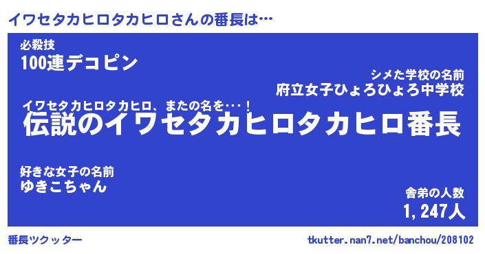 | 肩書あだ名 | 『イワセタカヒロタカヒロCEO』 |