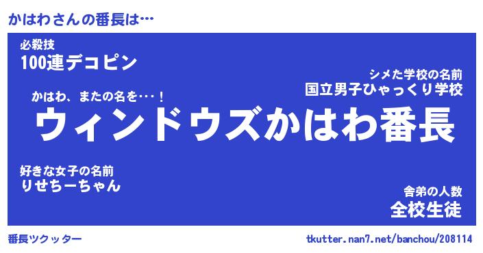 | ヒーロー風カッコイイあだ名 | 『スーパーカハワ』『ウルトラかはわマン』 |