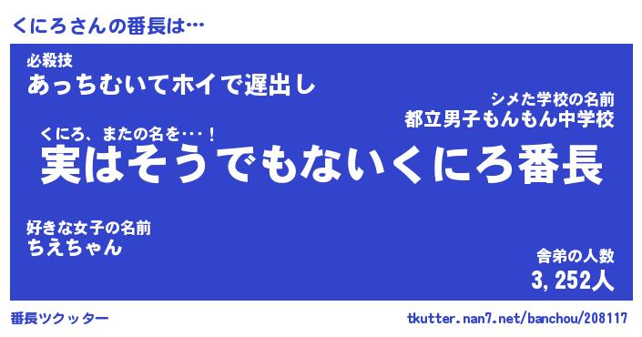 | ピコ太郎風あだ名 | 『クコ四郎』『ピク次郎』『クニ四郎』 |