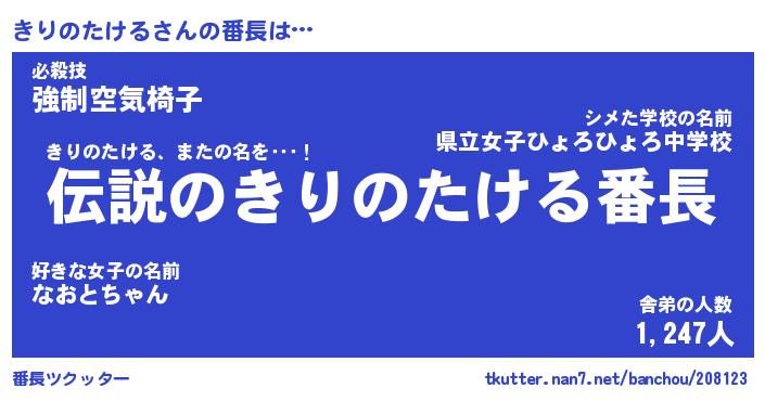| 肩書あだ名 | 『きりのたける店長』『きりのたける班長』 |