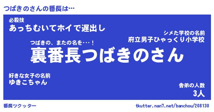 | 2回繰り返すあだ名 | 『つばつば』『つつばば』『おらおら』 |