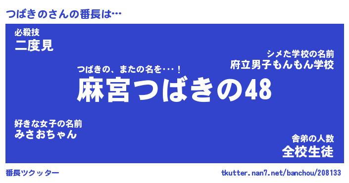 | ヘコむあだ名 | 『つばにー』『なまこ酢』『つばを』 |