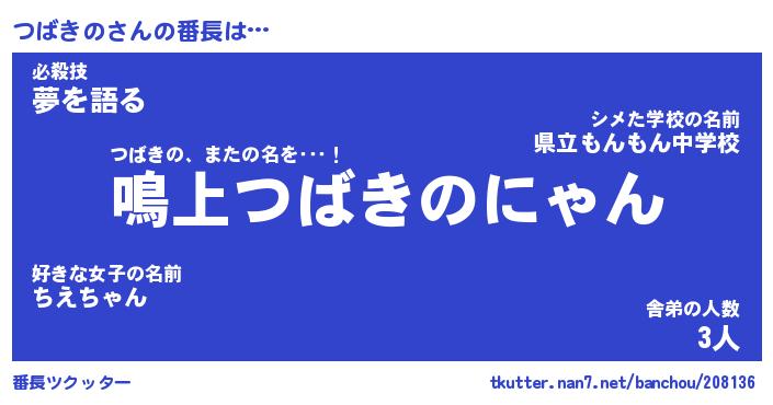 | ヘコむあだ名 | 『つばにゅー』『豆乳』『つばっ子』 |