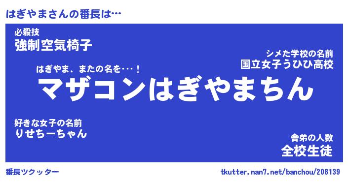 | ファンタジー風あだ名 | 『ハギフェル』『エターナルハギヤマー』 |