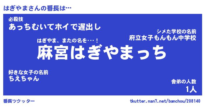 | 意味不明あだ名 | 『ペロリンはぎやま』『永久保存はぎやま』 |