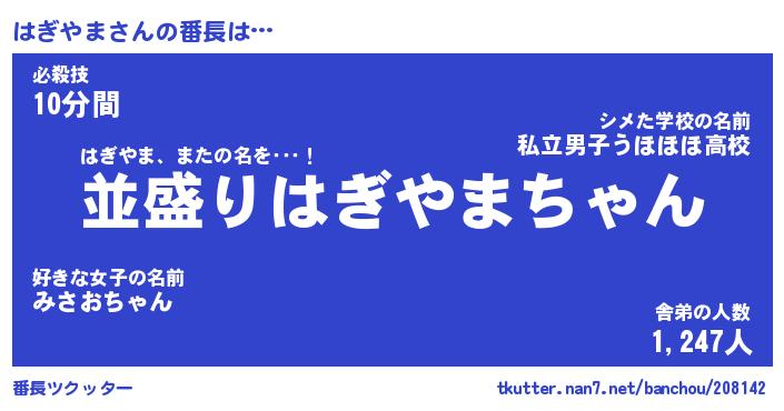 | 意味不明あだ名 | 『ペロリンはぎやま』『永久保存はぎやま』 |