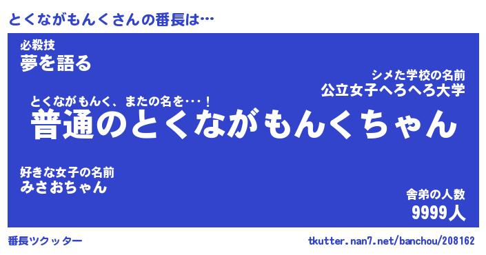 | 恥ずかしいあだ名 | 『プリティーとくながもんく』『とくちん』 |