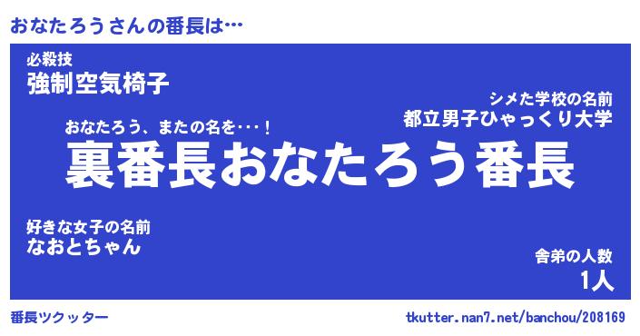 | ファンタジー風あだ名 | 『オナフェル』『エターナルオナタロウー』 |