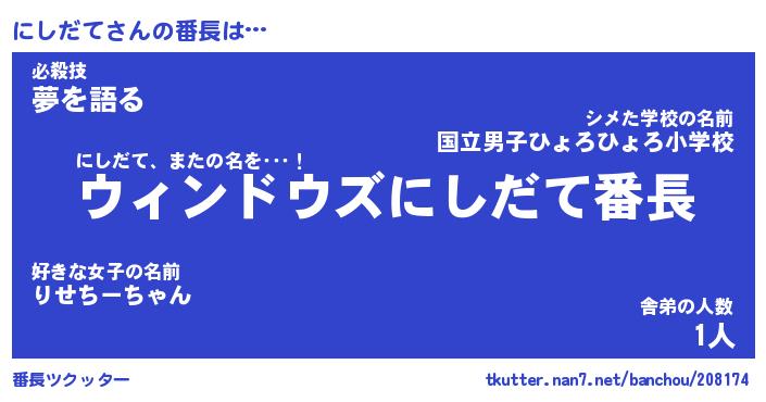 | 肩書あだ名 | 『にしだて社長』『にしだて大統領』 |