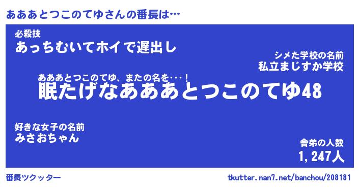 | 欧米人風あだ名 | 『マイケルあああとつこのてゆ』 |