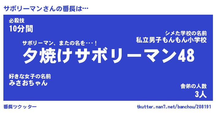 | ヒーロー風カッコイイあだ名 | 『スーパーサボリーマン』『魔戒騎士サボ』 |