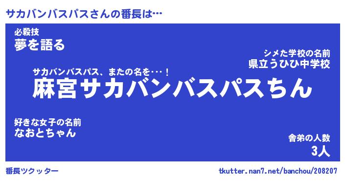| ヒーロー風カッコイイあだ名 | 『スーパーサカバンバスパス』 |