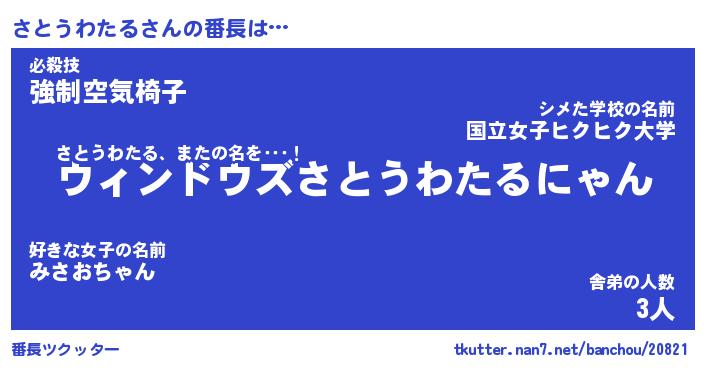 | 肩書あだ名 | 『さとうわたる社長』『さとうわたる団長』 |