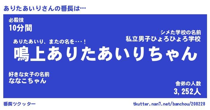 | 伝説のあだ名 | 『封印されしスナイパーありたあいり』 |