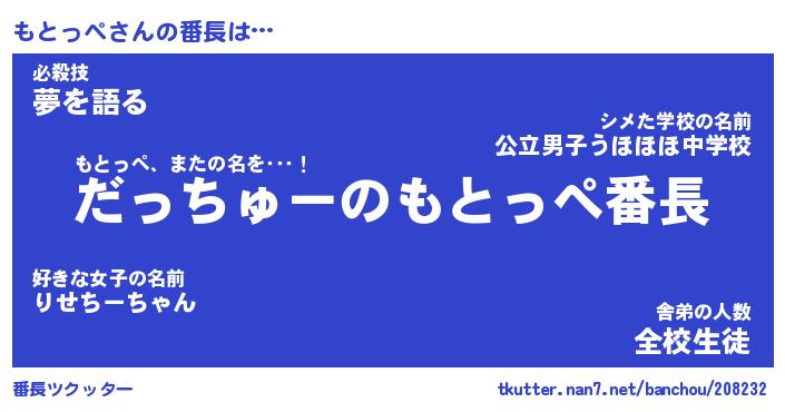 | ピコ太郎風あだ名 | 『モコ四郎』『ピモ四郎』『モト八郎』 |