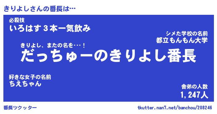 | 意味不明あだ名 | 『ペロリンきりよし』『永久保存きりよし』 |