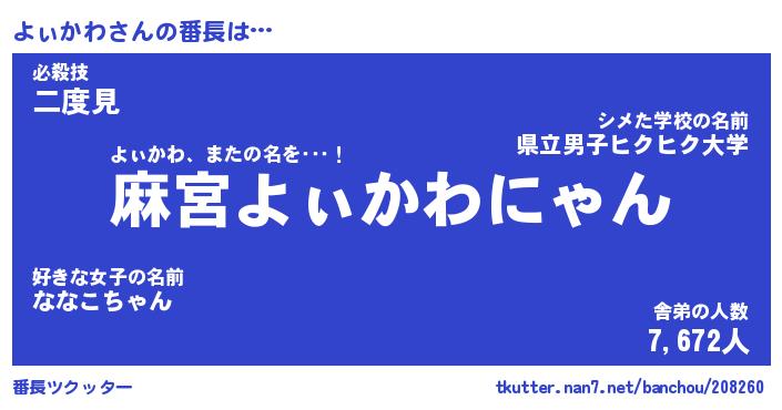 | 意味不明あだ名 | 『ペロリンよぃかわ』『永久保存よぃかわ』 |