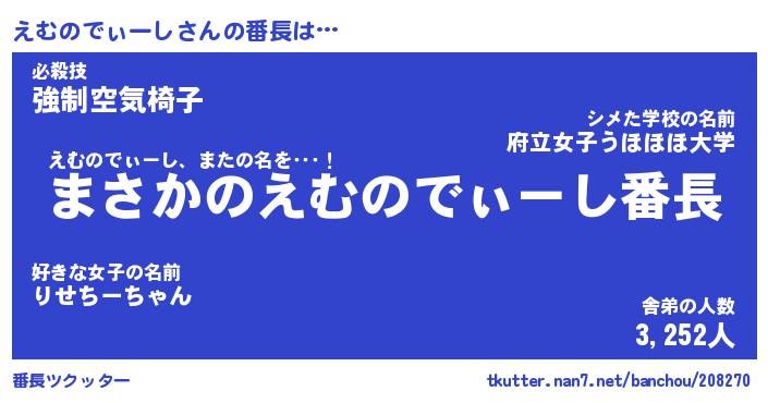 | 伝説のあだ名 | 『伝説の竜騎士えむのでぃーし』 |