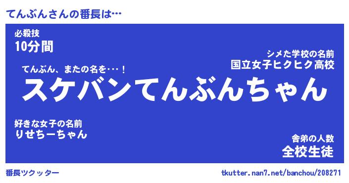 | 意味不明あだ名 | 『ペロリンてんぶん』『永久保存てんぶん』 |
