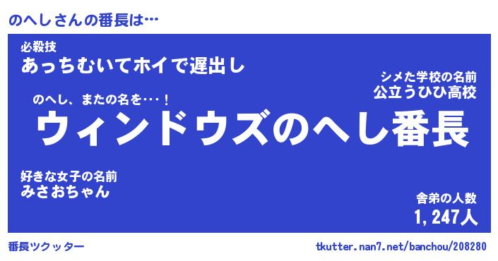 | ヒーロー風カッコイイあだ名 | 『スーパーノヘシ』『ウルトラのへしマン』 |