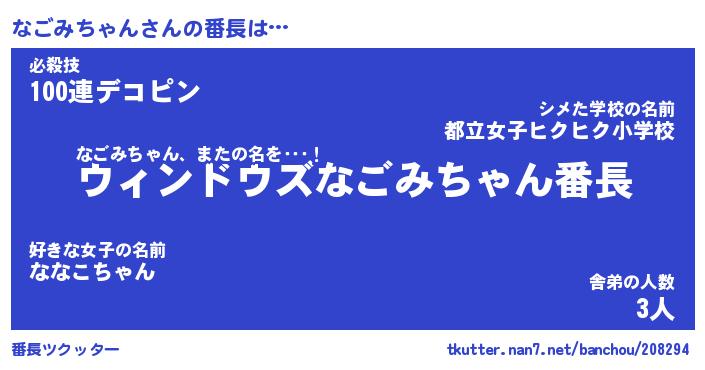 | ヘコむあだ名 | 『なごもー』『つくし』『なごお』 |