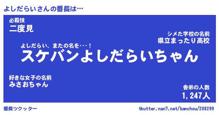 | ポケモン風あだ名 | 『ヨシチュウ』『ヨシダダネ』 |