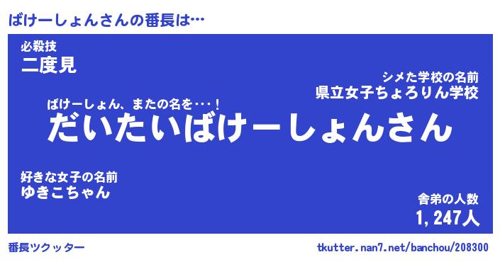 | ヘコむあだ名 | 『ばけもー』『酢こんぶ』『ばけを』 |