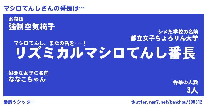 | ヒーロー風カッコイイあだ名 | 『スーパーマシロテンシ』『暗黒騎士マシ』 |