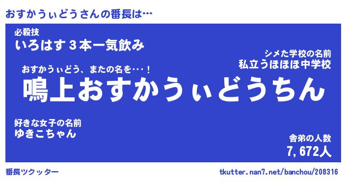 | ピコ太郎風あだ名 | 『オコ六郎』『ピオ六郎』『オス八郎』 |