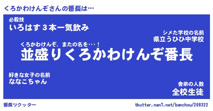 | 男性向けラノベタイトル風あだ名 | 『くろかわけんぞの憂鬱』 |