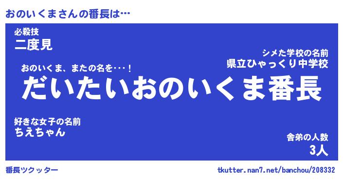 | ピコ太郎風あだ名 | 『オコ二郎』『ピオ次郎』『オノ六郎』 |