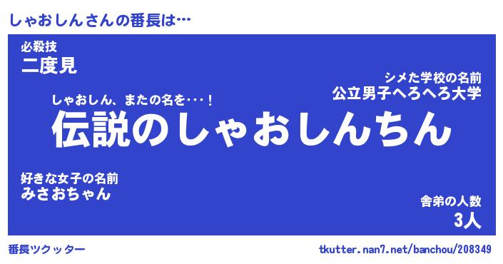 | 伝説のあだ名 | 『伝説のスナイパーしゃおしん』 |