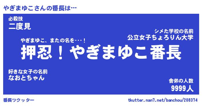 | 伝説のあだ名 | 『封印されしスナイパーやぎまゆこ』 |
